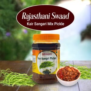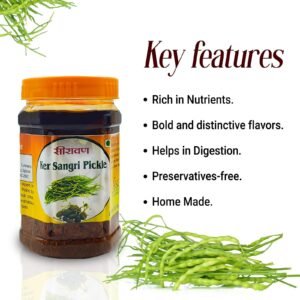 Rajasthani Ker Sangri Achaar Is a Very Unique and Popular Pickle from Rajasthani and Marwadi Cuisine. This Ker Sangri Pickle is free from artificial preservatives and is traditionally made by the rural women of Rajasthan. Ker, Sangri pieces which are handpicked, sun-dried and then pickled to perfection. Ker (berry) and Sangri (desert beans) is rich in potassium, magnesium, calcium, zinc, and iron. It is also a rich source of protein, dietary fibre, and saponins, which help boost the immune system and also keep cholesterol under control.